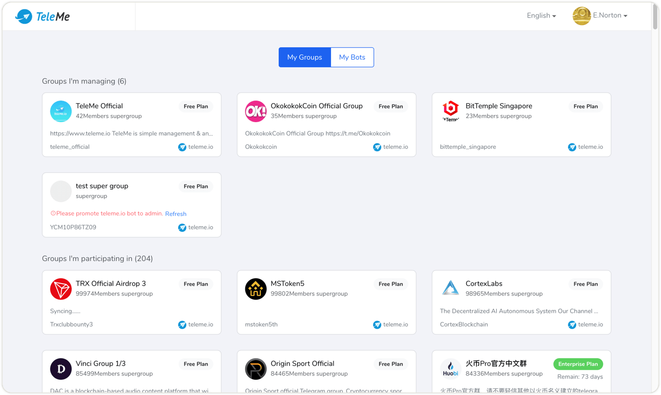 TeleMe has been seamlessly integrated with Secure ID. The administrator team of your group is automatically recognized and synchronized, requires no extra setup.